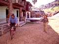 Description: Recontruccion de que pasó con la primera bicicleta que llegó al oeste. Borja sabia montar!!! |